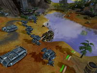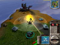 Геймплей Игра представляет собой пошаговую стратегию - игроки делают свои ходы по очереди. Очередность соблюдается не только в ходах, но и в наступлении определенных фаз игры, которые сменяются циклично: есть боевые фазы, есть фазы закупки вооружений и т.п. Под ходами конечно подразумевается не 1 шаг юнита, как в шахматах, а совокупность всех перемещений и действия с вашей стороны в рамках возможностей текущего хода. Здесь, например, в фазе "combat" ваш ход заключается в перемещении всех или не всех юнитов на новые позиции (или оставить на старых) в пределах дальности их перемещения за 1 ход и выполнении стрельб, если есть по кому стрелять в радиусе поражения. В другой фазе, например, Recruiting ходом считается закупка юнитов и расстановка их по местам на карте. ![]() ![]() ![]() ![]() ![]() ![]() ![]() ![]() ![]() Это можно делать до тех пор, пока не закончатся деньги либо вы не сочтете нужным прекратить фазу. Фазы наступают синхронно у обеих сторон, так что фаза боя наступает у вас и у противника по очереди, а затем идут другие фазы, но тоже "бок о бок". Игровой экран содержит карту (справа вверху) и меню слева внизу. Здесь же есть две кнопки rewind и undo, позволяющие "отмотать" ходы обратно и "переходить". Перед началом миссий вы можете выбрать ту сторону, под чьими флагами будете воевать. Одна сторона представлена бравыми ребятами с интеллектуальным выражением лица, а другая - личностями с коварными и омерзительными лицами - так что руководствоваться придется первым впечатлением. По сути разницы нет никакой. Итак, все боевые действия разворачиваются на островах и водной глади между ними. В полной версии игры будет 10 островов, из которых в демо-версии есть только 1. Острова поделены на государства с различным уровнем экономики и различными географическими недостатками и преимуществами. Как и в любой войне, здесь нужно защищать свои и завоевывать чужие государства, а также удерживать над ними контроль. Для выполнения этих задач у вас имеются денежные ресурсы и войска. Экономический потенциал разных стран стабилен, но различается как низкий, средний и высокий, что выражается в количестве денежных единиц, появляющихся в казне государства за 1 ход. Чем больше денег, тем более дорогую и мощную боевую технику можно приобретать и тем эффективнее воевать. Все государства имеют башню и отмечены границами в виде линий из двух полос. Цвет полос говорит о том, является ли государство нейтральным, вашим или вражеским. Как бы там ни было, но контроль над любым государством считается установленным, если на его территории нет вражеских юнитов и один из ваших юнитов находится в городской башне. Последняя принадлежность государства отмечена в виде развевающегося над башней флага. В некоторых режимах игры существуют государства, флаг которых не виден - они могут быть как вражескими, так и нейтральными. Как уже говорилось, помимо ходов, игра имеет фазы. О наступлении каждой фазы оповещается в виде текстового и звукового сообщения. Текущая фаза отмечена надписью в правом нижнем углу меню. Всего в игре несколько фаз и среди них есть такие, как combat, recruitment, disclosure. В фазе combat вы можете перемещать свои войска и вести стрельбу. Для перемещения сделайте левый клик юнит и на экране появятся возможные позиции для перемещения, отмеченные кружками. Кликнув на любой кружок, вы заставите юнит переместитьс